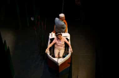 Deux pêcheurs du dimanche. Un beau dimanche. Un étang. Un bel endroit, le meilleur endroit. Une aventure sur l’eau. En barque, un petit moment qui flotte entre l’humour et la poésie.